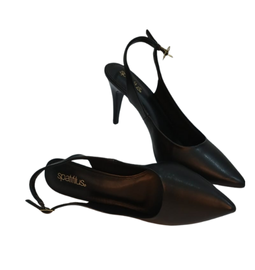 Estes scarpins slingback em um preto fosco e atemporal são a própria definição de elegância minimalista. O design é depurado, focando-se na silhueta clássica do bico fino que alonga a perna. A tira fina e ajustável no calcanhar (slingback) proporciona um charme open-back e segurança, enquanto o salto agulha de altura média confere a elevação ideal sem sacrificar o conforto para longas horas. É um modelo versátil e essencial, perfeito para transitar com sofisticação discreta entre o ambiente corporativo e eventos noturnos.