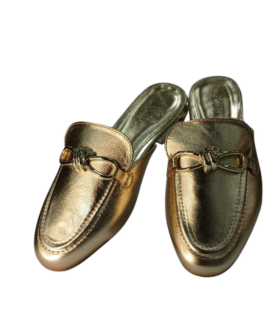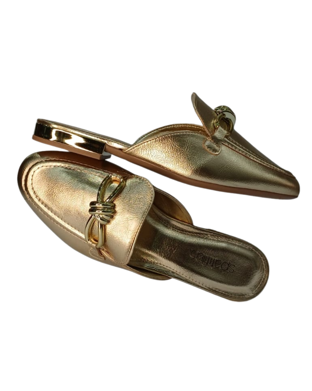 Esse mule dourado Spatifilus é a expressão perfeita da elegância moderna. Seu acabamento metalizado realça o brilho natural do look, enquanto o detalhe em metal na parte superior adiciona um toque de sofisticação e charme atemporal.