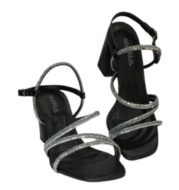 A sandália preta com tiras de pedrarias é o equilíbrio perfeito entre conforto e elegância. Seu salto bloco garante estabilidade e praticidade, enquanto o design moderno com tiras brilhantes valoriza os pés com glamour. Versátil, é a escolha ideal para eventos noturnos, festas ou para dar um toque sofisticado em produções do dia a dia.