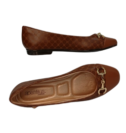 Essa é uma sapatilha feminina em tom marrom, de bico levemente quadrado, confeccionada em material que combina textura lisa e efeito croco. O detalhe frontal com enfeite metálico dourado traz sofisticação e um toque clássico ao modelo. Confortável e versátil, é uma peça ideal para compor looks elegantes no dia a dia ou em ocasiões que pedem praticidade sem abrir mão do estilo.