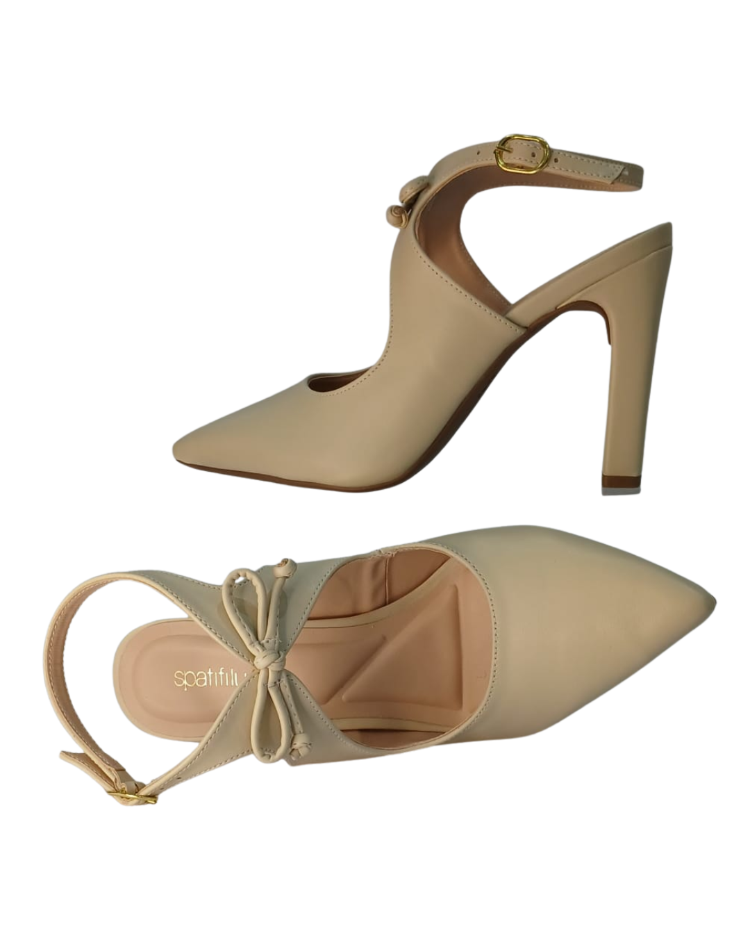 O scarpin slingback Spatifilus é a tradução perfeita da elegância minimalista. Seu design moderno, com bico fino e salto alto, valoriza a silhueta e traz um ar refinado e versátil. O laço delicado na parte frontal adiciona um charme sutil, enquanto o tom neutro garante combinações harmoniosas com diferentes estilos e ocasiões. Um clássico indispensável no closet feminino.