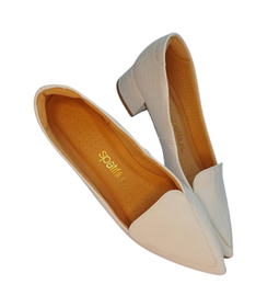 Apresentamos o sapato que une elegância e modernidade. O acabamento em textura de crocodilo na cor branca confere um visual sofisticado e diferenciado, perfeito para alongar a silhueta. Com um bico fino clássico e um salto baixo e grosso, este modelo é a escolha ideal para quem busca estilo, conforto e um toque de originalidade em uma única peça.